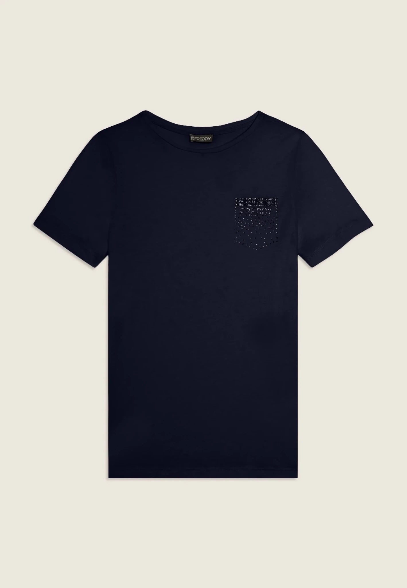 T-shirt manica corta con strass a forma di taschino FREDDY