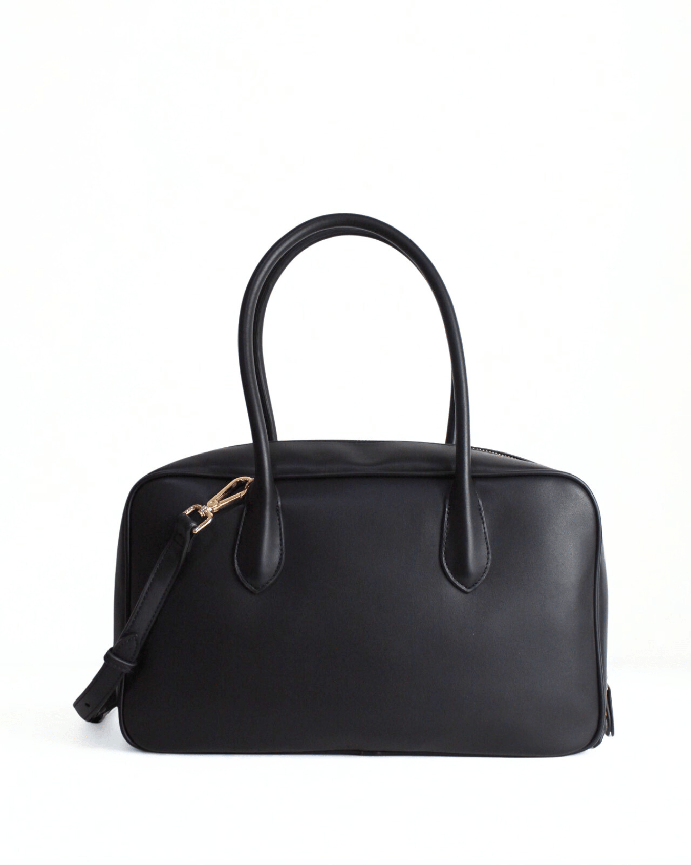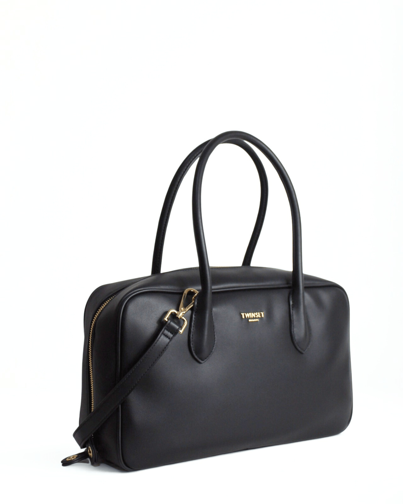Borsa bauletto grande effetto pelle di vitello nappato naturale liscio. Ha chiusura con zip a doppio cursore con occhielli sui tirazip per agganciare charms, doppio manico tubolare a mano o a spalla, tracolla regolabile e rimovibile per indossare il modello cross-body, logo lettering in metallo. La puoi portare anche con fianchi aperti all’esterno per creare una linea a tote svasata. Foderata e con tasche interne
