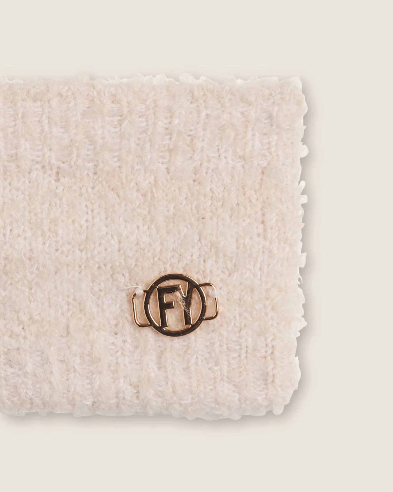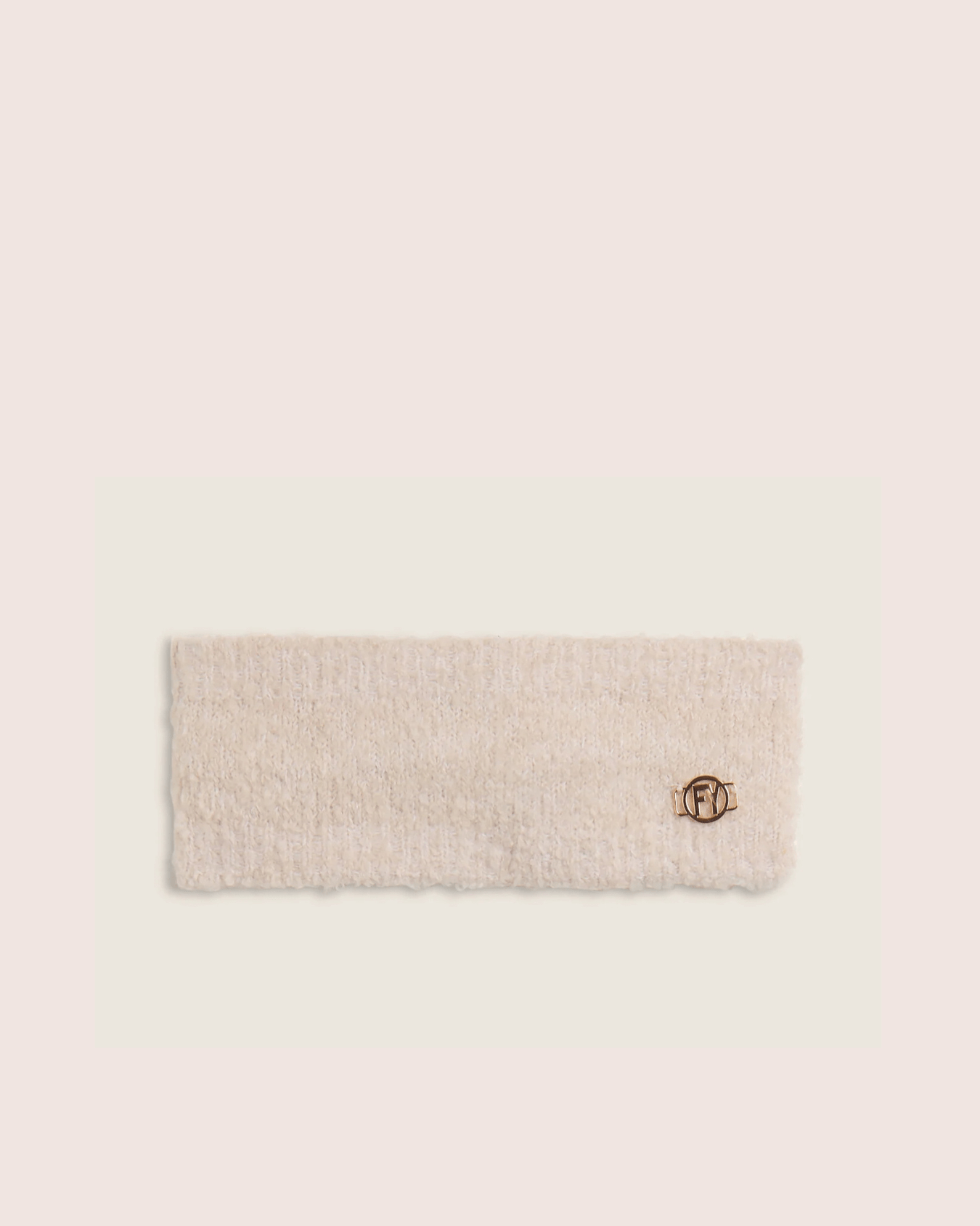 Morbida, calda e dallo stile elegante: questa fascia per capelli invernale è realizzata in tessuto bouclé effetto lana, soffice al tatto e perfetto per le giornate più fredde. La texture vaporosa dona un look avvolgente e femminile, mentre la struttura elasticizzata assicura una vestibilità comoda che protegge fronte e orecchie. Il dettaglio distintivo? Il logo FY dorato applicato lateralmente, che illumina il design con un tocco sofisticato.