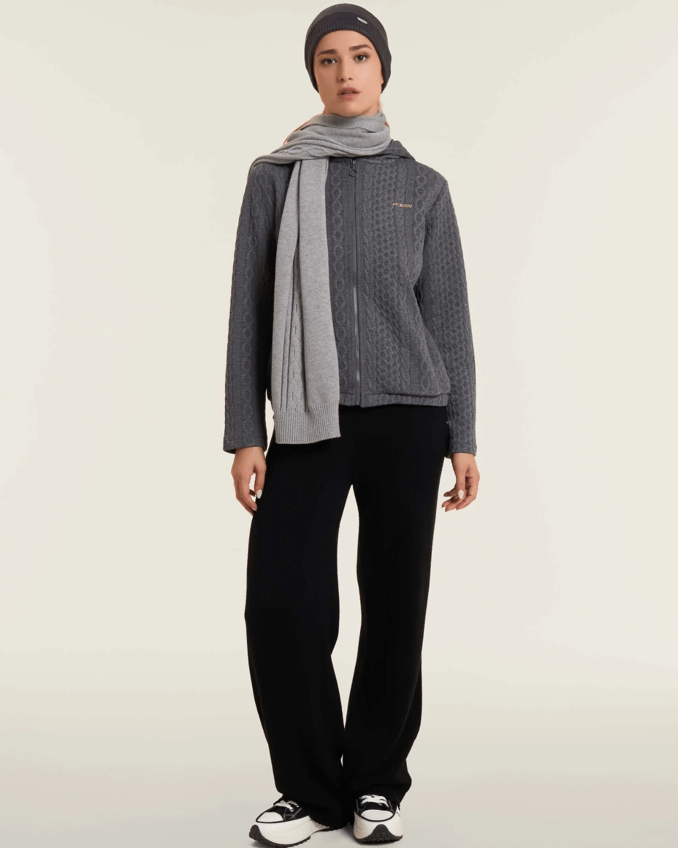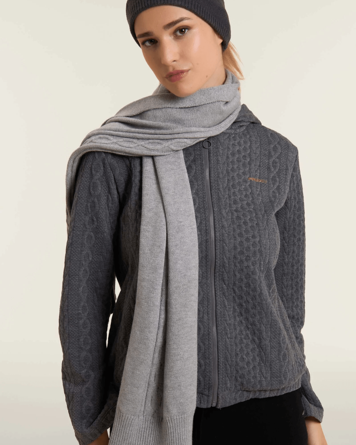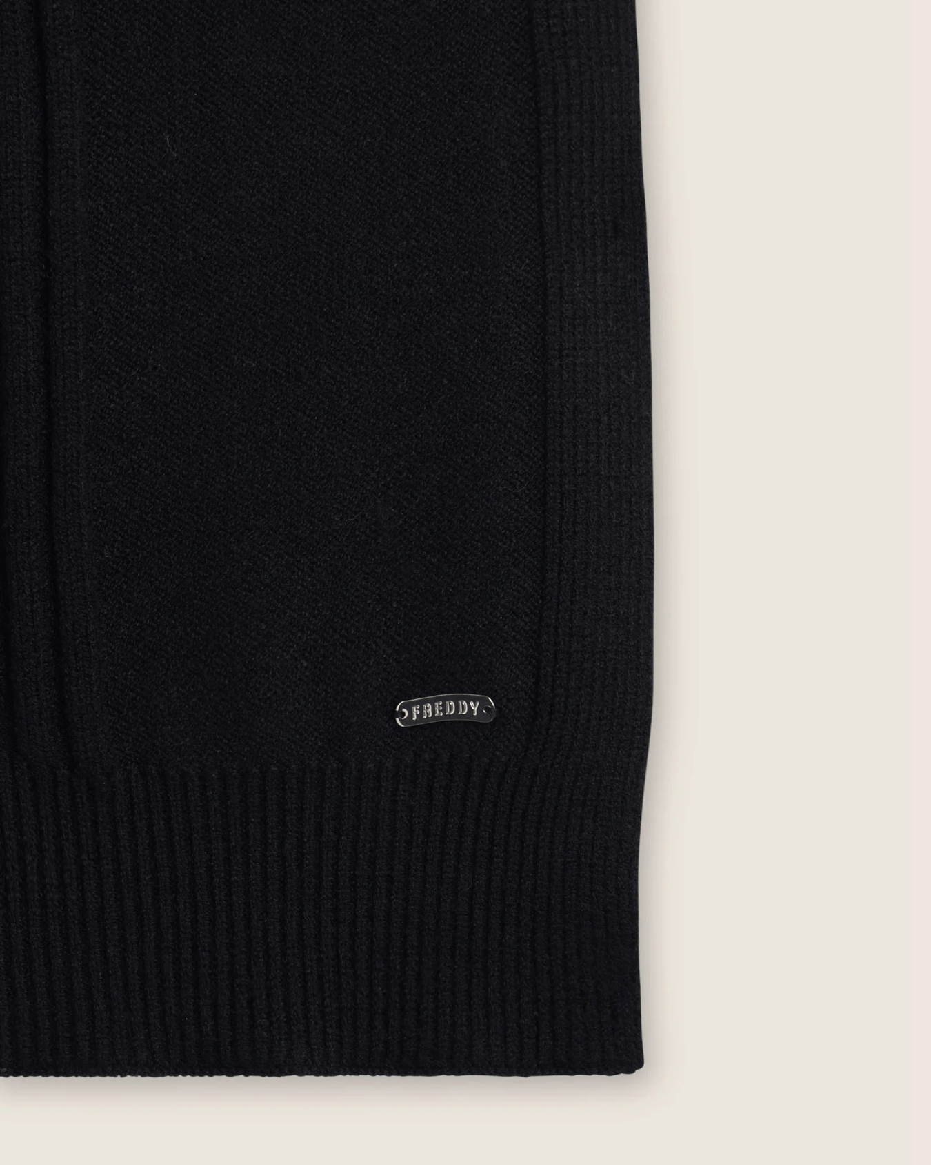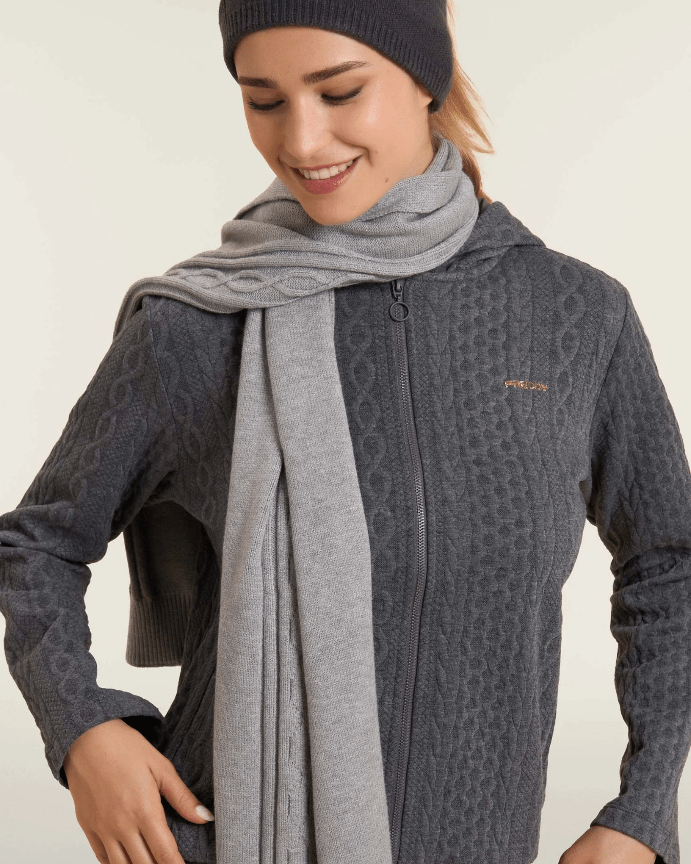 Un classico intramontabile rivisitato con cura nei dettagli: questa sciarpa in maglia è realizzata in filato misto caldo e morbido e presenta una raffinata treccia centrale lavorata a maglia, che dona carattere e movimento al design. Ideale per completare i tuoi outfit invernali con stile, è perfetta da abbinare a beanie o fascette coordinati. Il piccolo logo FREDDY applicato sul fondo firma il capo con discrezione, sottolineandone la qualità.