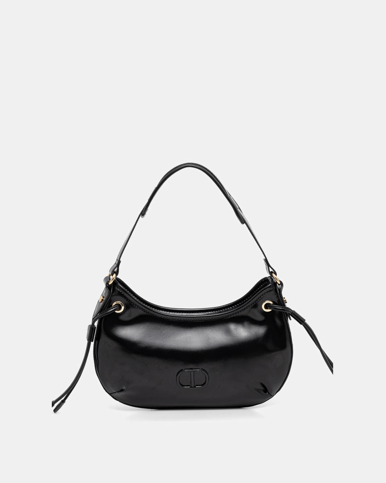 La borsa hobo 'Glossy' unisce eleganza e praticità in un design raffinato. Realizzata in ecopelle lucido e verniciato, si distingue per le stringhe laterali tono su tono che valorizzano ogni dettaglio. Il manico imbottito e profilato garantisce un comfort superiore, perfetto da portare a spalla tutto il giorno. Con chiusura zip sicura, logo Oval T discreto e occhielli in metallo resistenti, questa borsa foderata è l’accessorio ideale per uno stile sofisticato senza rinunciare alla funzionalità.