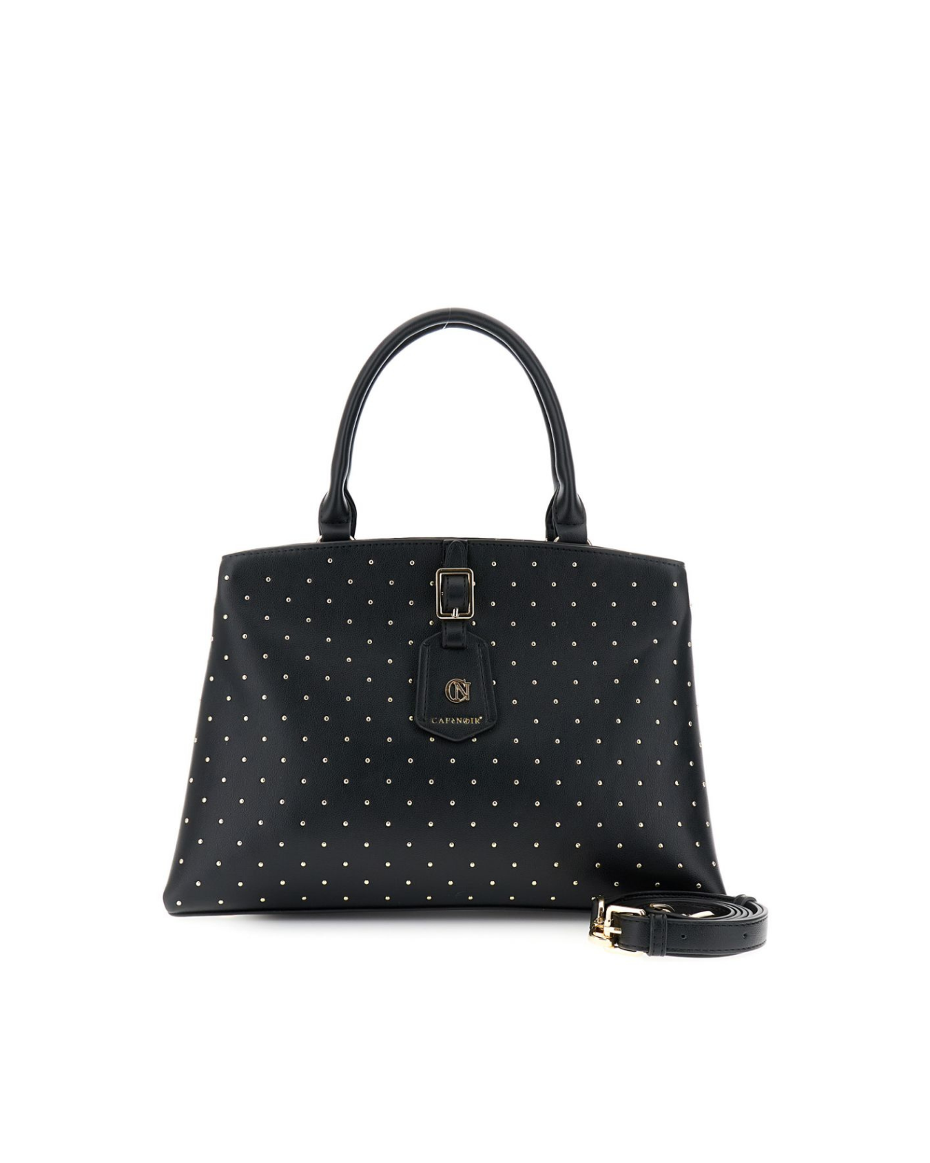 Questa borsa a mano in similpelle nera unisce stile e praticità con le sue microborchie applicate e il pendente con fibbia decorativa, che aggiungono un tocco di carattere unico. La tramezza interna mantiene tutto organizzato, mentre la tracolla removibile offre versatilità per adattarsi a ogni occasione. Perfetta per chi cerca un accessorio elegante e funzionale.