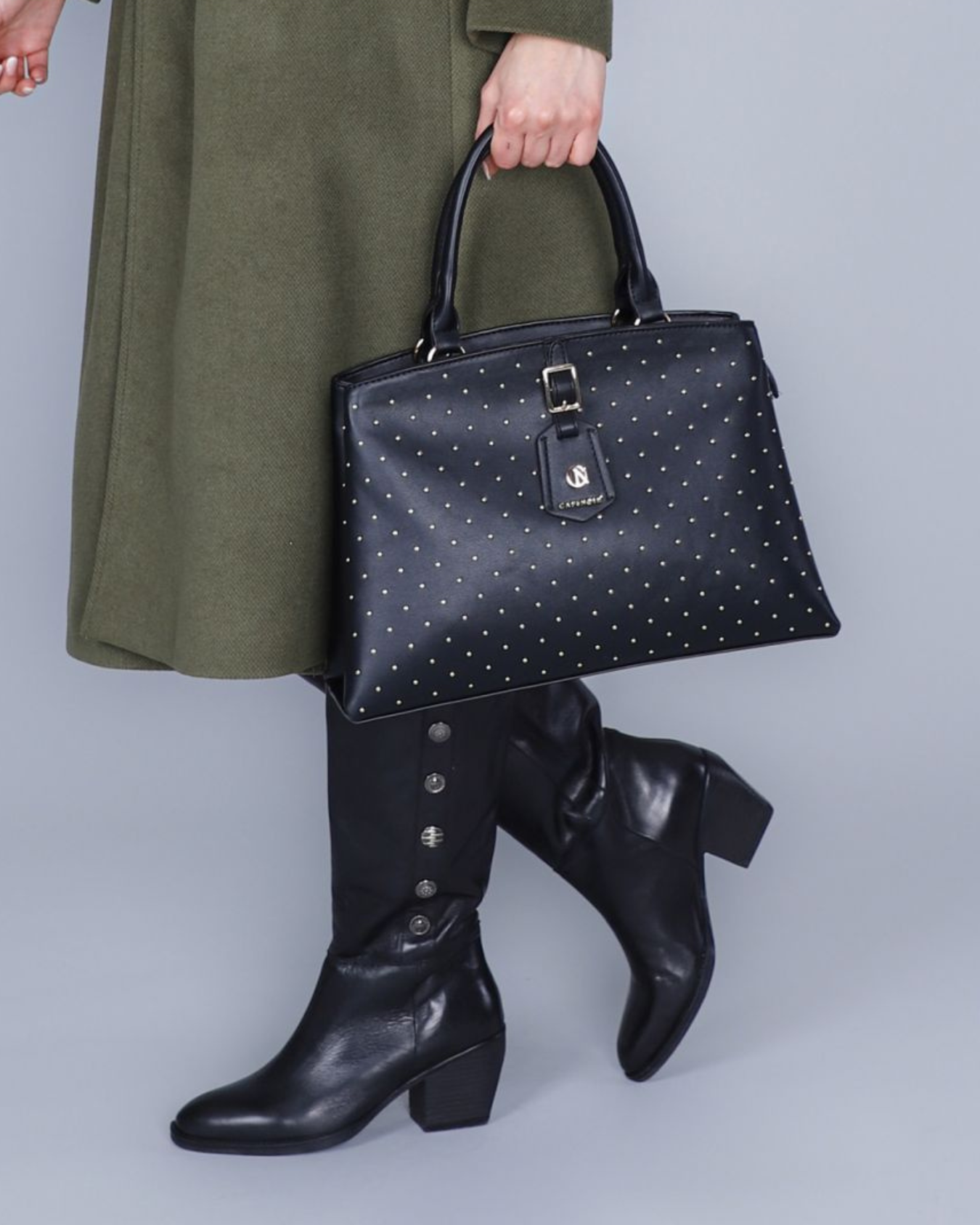 Borsa a mano con microborchie nero