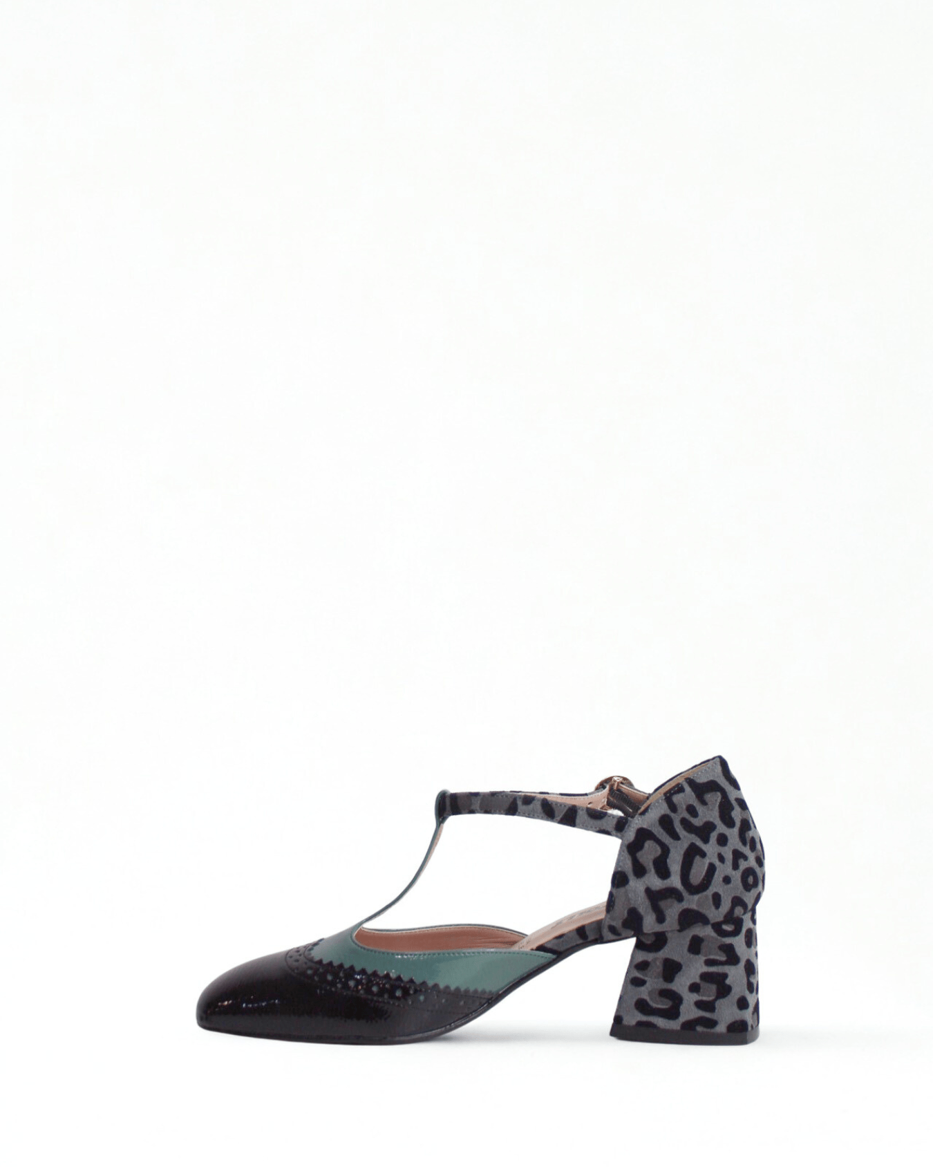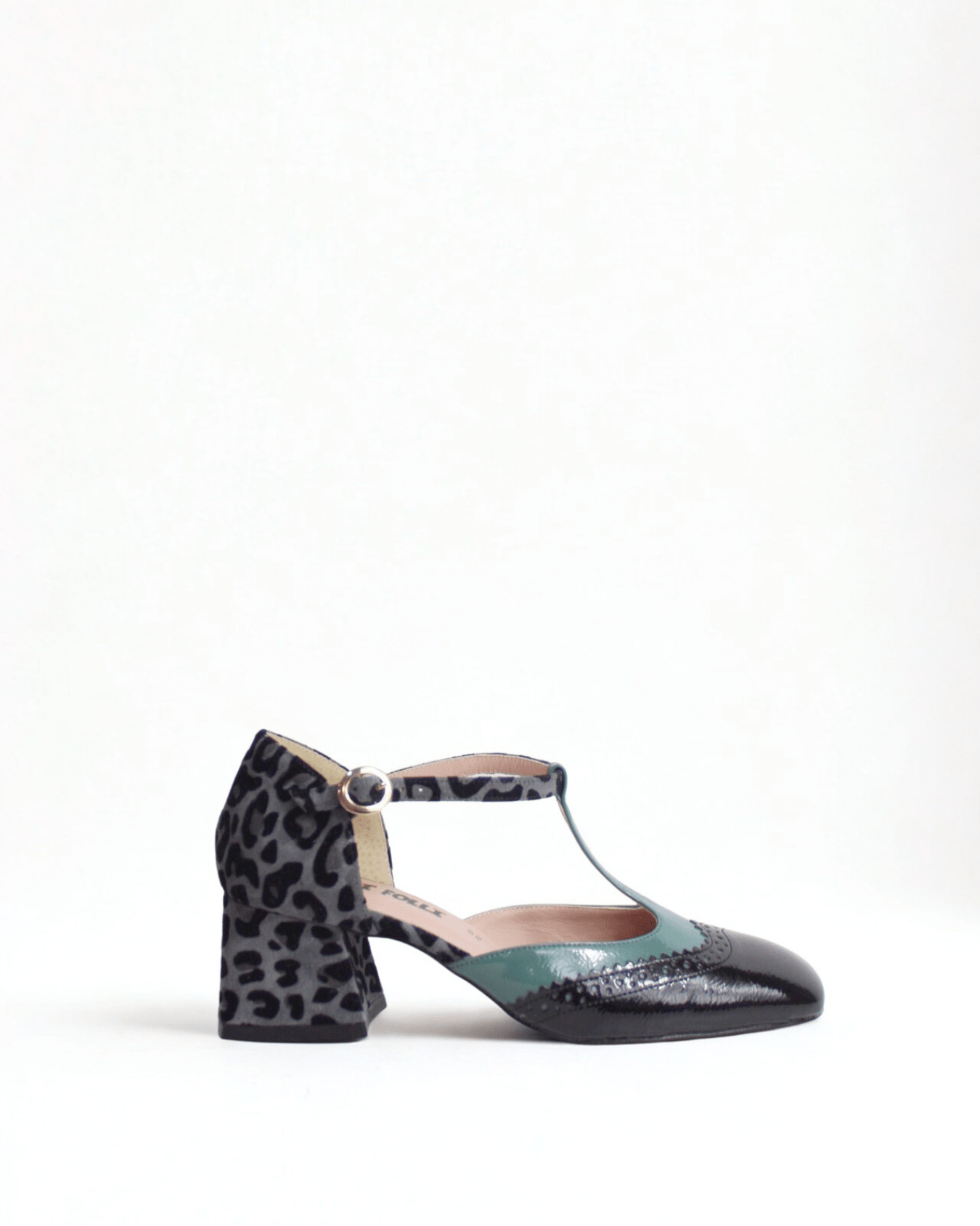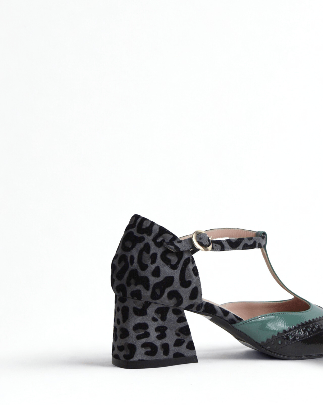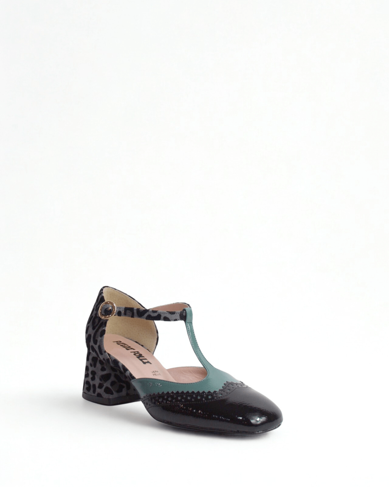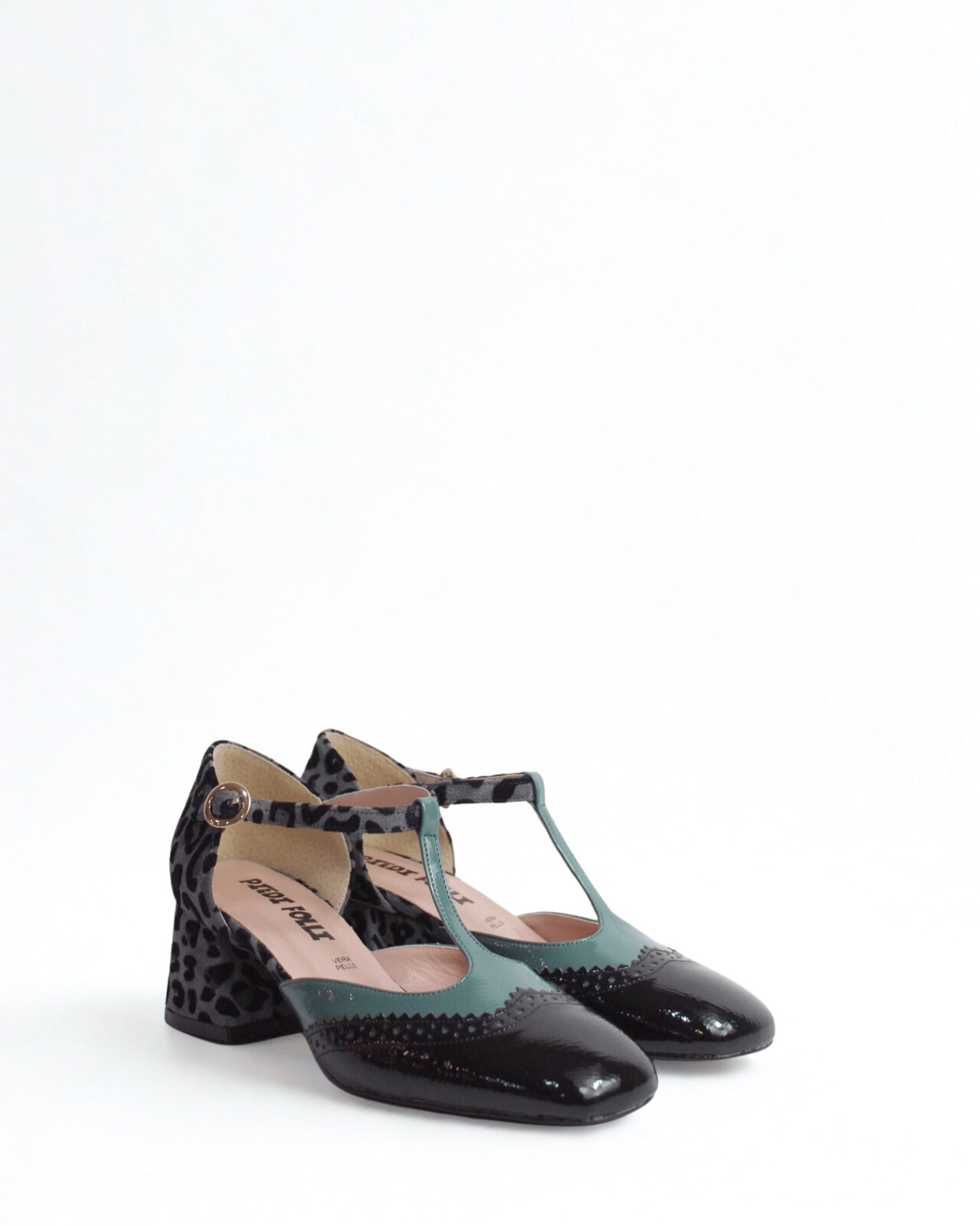 Scopri l'eleganza audace della Mary Jane verde di Piedi Folli, realizzata interamente in pelle di alta qualità. Il tacco maculato grigio aggiunge un tocco distintivo, mentre la combinazione di verde e nero rende questa calzatura perfetta per chi ama distinguersi con stile. Comfort e design si uniscono per un look irresistibile in ogni occasione.