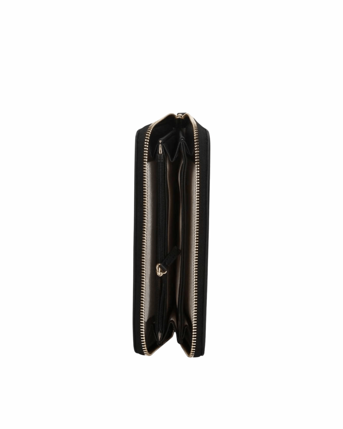 Portafoglio Twinset realizzato in ecopelle sostenibile con logo distintivo. Design elegante e compatto, perfetto per chi cerca praticità senza compromessi stilistici. Scomparti funzionali per carte e contanti, ideale per il quotidiano. Un accessorio versatile che combina responsabilità ambientale e raffinatezza, elevando il tuo stile con consapevolezza.