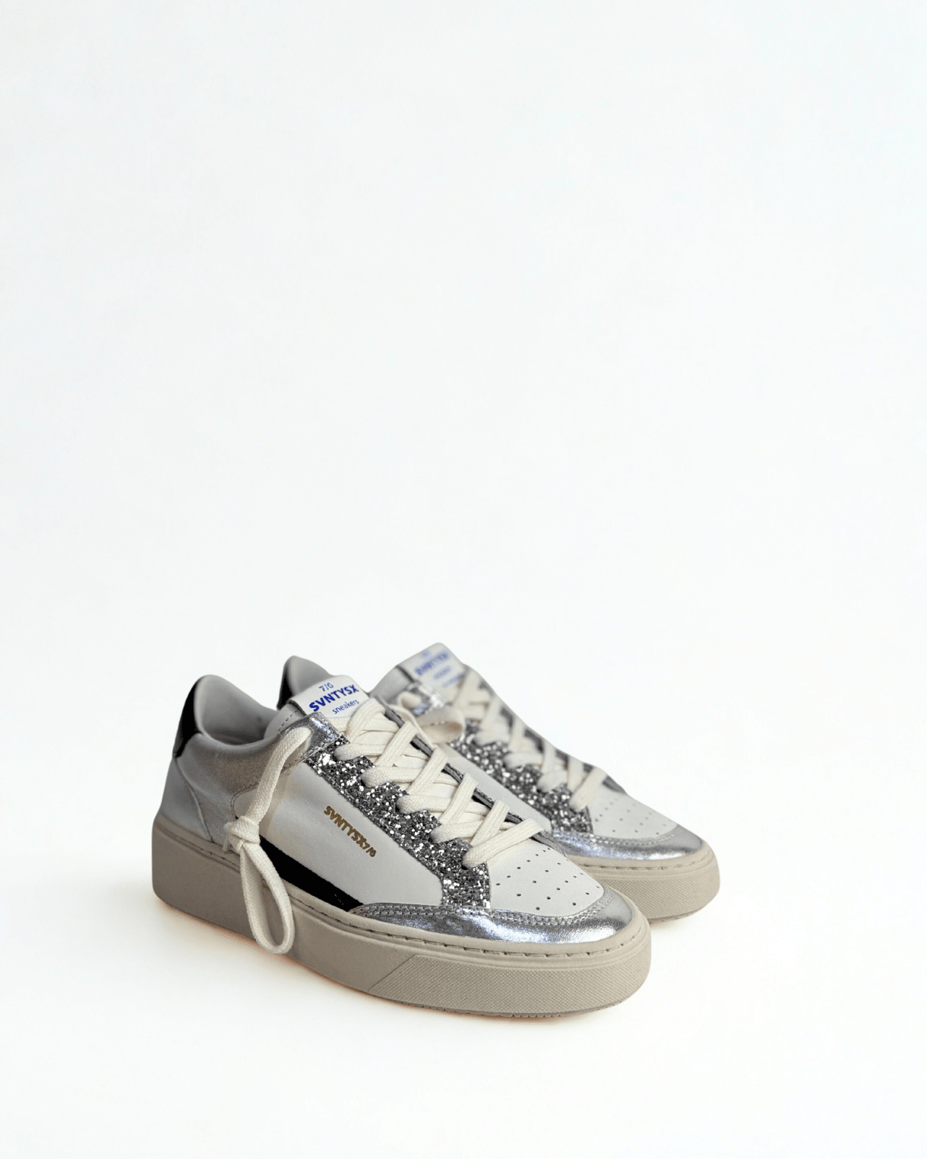 Sneakers Silver in pelle anilina SVNTYSX7/6eleganza e comfort made in Italy. Realizzate con pelle anilina, queste sneakers bianche e platino combinano uno stile minimalista con la qualità artigianale italiana. Perfette per chi ricerca versatilità senza compromessi: indossale con outfit casual o sportivi per un look raffinato e contemporaneo. La costruzione italiana garantisce durabilità e comfort durante tutto il giorno.