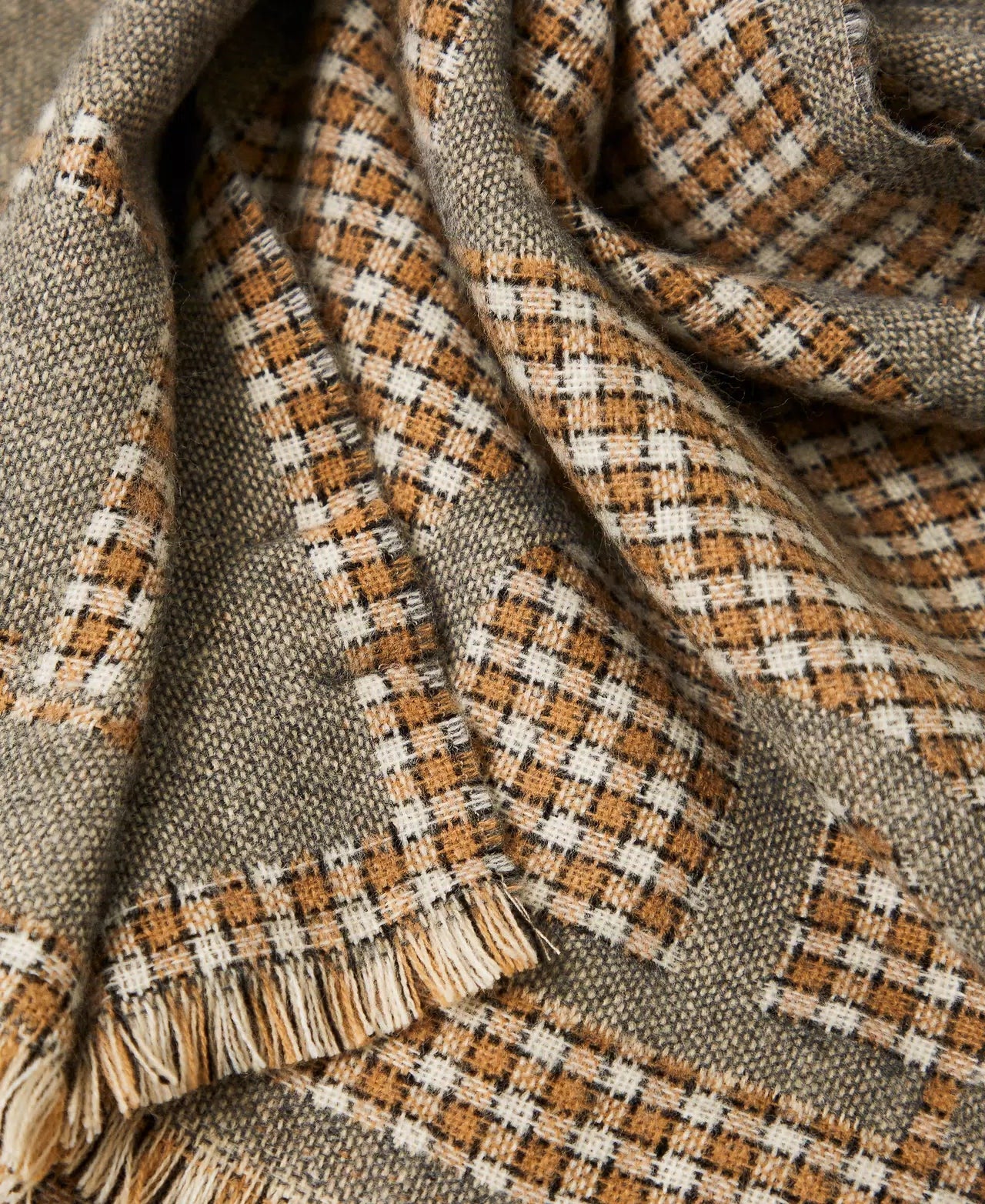 Stola con lavorazione jacquard a motivo Oval T in fantasia check e profili sfrangiati.